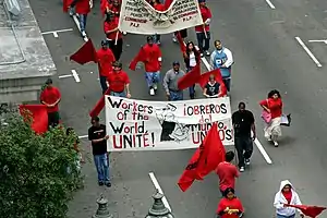 According to the constitution adopted at the time of the PLP's formation in 1965, membership was open to anyone at least 17 years old who accepted the program and policies of the party, paid dues and required assessments and subscribed to party publications.[14] Supreme authority within the organization was to be exerted by national conventions, held every two years.[14] The convention was to elect a National Committee to handle matters of governance between conventions.[14] The PLP's primary party unit was the "club", organized either on a shop, territorial, or functional basis.[14] All party members were required to be active members of a club and bound by the principles of democratic centralism, in which decisions of higher bodies were considered binding on participants in lower bodies.[14] During the 1960s, new members were additionally required to undergo three months of ideological training, usually in small group settings in individual houses.[6]