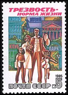 Following Stalin's death, the Soviet Union held three major anti-alcohol campaigns. The first was held during Nikita Khrushchev's administration in 1958,[7] the second during Leonid Brezhnev's administration in 1972,[8][9] and the third (and biggest) was held during Mikhail Gorbachev's administration from 1985 to 1988.[10]