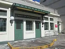 In April 1993, the New York State Legislature agreed to give the MTA $9.6 billion for capital improvements. Some of the funds would be used to renovate nearly one hundred New York City Subway stations,[6][7] including Prospect Park.[8] The MTA conducted a $12 million renovation of the Prospect Park station in the mid-1990s. The first phase of the renovation took place from November 1992 to August 1994; it included restoring the station's tiled friezes and yellow-tile walls, as well as restoring the entrance at Empire Boulevard, adding a decorative gate alluding to the Prospect Park Zoo. The second phase included renovating the Lincoln Road entrance.[9] The renovation was completed in 1996.[10] In 1999, the MTA leased the space above the Lincoln Road entrance to a nursery school that planned to renovate the space for $600,000.[11]