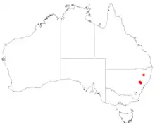 This mint bush grows in forest in gullies, often in rocky sites in the Sandy Hollow–Merriwa district.[2][3][4]