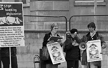 - ↑ "Protesters demand end to bombing". BBC News. 2001-11-10. Retrieved 2009-07-16.