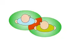 Personal space is the region surrounding a person which they regard as psychologically theirs. Most people value their personal space and feel discomfort, anger, or anxiety when their personal space is encroached.[5] Permitting a person to enter personal space and entering somebody else's personal space are indicators of perception of those people's relationship. An intimate zone is reserved for close friends, lovers, children and close family members. Another zone is used for conversations with friends, to chat with associates, and in group discussions. A further zone is reserved for strangers, newly formed groups, and new acquaintances. A fourth zone is used for speeches, lectures, and theater; essentially, public distance is that range reserved for larger audiences.[6]