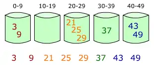 Here A is the array to be sorted and the mapKey functions determines the number of subarrays to use. For example, floor(K) will simply assign as many subarrays as there are integers from the data in A. Dividing the key by a constant reduces the number of subarrays; different functions can be used to translate the range of elements in A to subarrays, such as converting the letters A–Z to 0–25 or returning the first character (0–255) for sorting strings. Subarrays are sorted as the data comes in, not after all data has been placed into the subarray, as is typical in bucket sorting.
