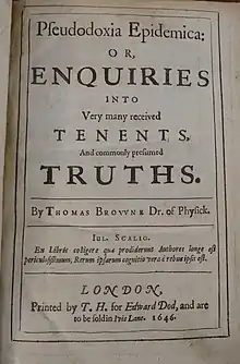 Pseudodoxia Epidemica or Enquiries into very many received tenents and commonly presumed truths, also known simply as Pseudodoxia Epidemica or Vulgar Errors, is a work by Thomas Browne challenging and refuting the "vulgar" or common errors and superstitions of his age. It first appeared in 1646 and went through five subsequent editions, the last revision occurring in 1672. The work includes evidence of Browne's adherence to the Baconian method of empirical observation of nature, and was in the vanguard of work-in-progress scientific journalism during the 17th-century scientific revolution. Throughout its pages frequent examples of Browne's subtle humour can also be found.
