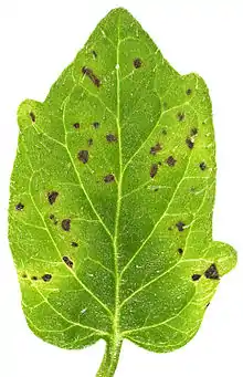 As its name suggests, P. syringae pv. tomato DC3000 (Pst DC3000) is virulent to tomato (Solanum lycopersicum). However, the tomato cultivar Rio Grande-PtoR (RG-PtoR), harboring the resistance gene Pto, recognizes key effectors secreted by Pst DC3000, making it resistant to the bacteria.[49] Studying the interactions between the Pto-expressing tomato lines and Pst DC3000 and its pathovars is a powerful system for understanding plant-microbe interactions.[50][51]