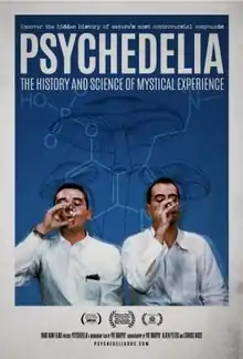 Psychedelia is an American documentary film from Hard Rain Films, that has been released in a revised and updated version in 2021. The film discusses the history of psychedelic drugs and their ability to produce mystical experiences. The therapeutic role of such drugs is considered, and controlled research studies conducted before the 1960s, at a time when such drugs were considered to be some of the most promising discoveries in the field of psychiatry, are discussed. Several study participant users are interviewed.[1][2][3][4] The film was a winner for best documentary film at the New Jersey International Film Festival, and was an official selection at the Southern Utah International Documentary Film Festival (DOCUTAH) and the Orlando Film Festival.[1]