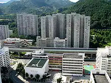 Pok Hong Estate (Chinese: 博康邨) is a mixed estate consisting of eight residential blocks completed in 1982, 1983 and 1985.[6] Its site was originally a shallow sand beach near Sha Tin Hoi. Some of the flats were sold to the tenants through Tenants Purchase Scheme Phase 5 in 2002.[1] In 2019, the housing estate has an estimated population of 16,063.[7]