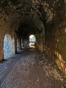 Since 1950 the use of the railway decreased as rail transport began to be replaced by higher tonnage road trucks, whose travel time and freight costs were lower.[6] Many factors led to the suspension of the railway and the use of roads as the main form of transport: the closure of Llano del Maipo Railway in the late 1940s, the earthquake in Las Melosas in 1958 (which caused damage to infrastructure), severe storms in the mid-1960s and the end of mining activity in the Volcano in 1976.