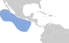 This species breeds around Cerro Evermann on Isla Socorro in the Revillagigedo Islands, Mexico, though formerly present on Clarion Island and San Benedicto. The main threat to this species comes from feral cats introduced to Socorro in the early 1970s. These cats usually prey on shearwaters immediately after landing, where a lack of understory renders them exposed. Sheep and goats are also destroying breeding habitat. The Isla Clarión was eradicated in 1988, when habitat and nesting sites were destroyed by introduced pigs, sheep and rabbits, the final of which competed against the shearwaters for nesting burrows. Despite this, some breeding habitat remains to the north and north-west of Socorro's summit, where introduced animals have yet to ravage. The current mature population is estimated between 249 and 999 birds. Due to the presence of these threats, it has been classified as critically endangered. Further threat is posed by light pollution from a recently constructed airstrip and possible volcanic eruptions, the latter eradicated the San Benedicto population. Sheep and pigs have since been eradicated from Clarion, though rabbits have yet to follow. On Socorro, sheep eradication is currently in progress. [1]