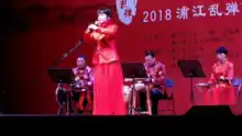 Pujiang opera is an ancient opera and originated in the Song dynasty in Pujiang. It is popular in Pujiang, Linan, Jiande, and Tonglu, and spread to Zhejiang, Jiangxi and Fujian. Pujiang opera is based on the local "vegetable basket song" and developed under the influence of south opera. South opera is one of the oldest opera in China. Pujiang opera was popular in local people, but it didn't appear on the stage until the middle of the Ming dynasty. In 2006, Pujiang opera has been listed as an intangible cultural heritage of China.
