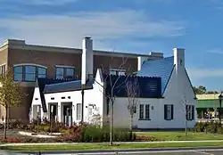 The Pure Oil Station in Geneva, Illinois was built in 1937 on Illinois Route 38 (West State Street) at its intersection with Fifth Street. The Pure Oil Company popularized the idea of filling station buildings. Prior to the 1920s, filling stations were regarded as unappealing fire hazards and were kept away from residential areas. Pure Oil developed a cheap, attractive design in the Tudor Revival style that fit the suburban aesthetic ideal. Pure Oil's design became their corporate trademark starting in 1927. Carl August Petersen, the Chief Engineer of Marketing Construction for Pure Oil, was responsible for the design which was replicated all over the country.[2]