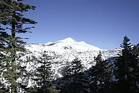 Pyramid Peak is a mountain in the California's Sierra Nevada in the Crystal Range to the west of Lake Tahoe. It is the highest point in the Desolation Wilderness.[2] With an elevation gain of almost 4,100 feet (1,250 m), the Rocky Canyon route is the mountain's most popular approach although it is very arduous. To the east, at the base of the peak, lies Pyramid Lake.