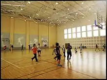 The newly built school offers students a much broader spectrum of extra-curricular activities. The facility contains a fully functional 400m track with proper markings. Inside the track is an official size soccer field, made from synthetic grass and rubber bits. Adjacent to the track is a Long Jump Pit and an outdoor tennis/basketball court.[8]