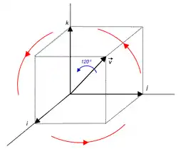 A rotation of 120° around the first diagonal permutes i, j, and k cyclically