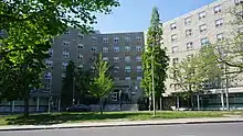 The buildings at Queen's vary in age from Summerhill, which opened in 1839, to Mitchell Hall, which opened in 2018.[47][48] Grant Hall, completed in 1905, is considered the university's most recognizable landmark. It is named after Reverend George Munro Grant, who served as Queen's seventh principal. The building is used to host concerts, lectures, meetings, exams, and convocations.[44] Two buildings owned and managed by the university have been listed as National Historic Sites of Canada. The Kingston General Hospital is the oldest operating public hospital in Canada.[49] The Roselawn House, which is east of the west campus, is the core component of the university's Donald Gordon Centre.[50][51]