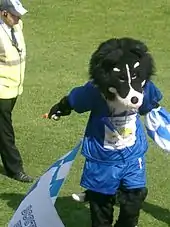 The club mascot is 'Dougie Doonhamer', a human-sized border collie dog. The character has been played for many years by local supermarket worker Brian Harkness.[12]