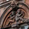The front of the hotel originally included arched windows with eight carved heads, with four heads located over the ground floor windows and four over the first floor. The front also features cherubs, a satyr playing the pan flutes, floral designs, eagles, and keystones carved as human heads.[2] The ground floor carvings have since been removed and the front of the building modernised.