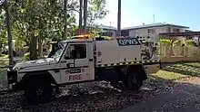 QPWS operate primarily the Toyota Land Cruiser 79 Series and Mercedes-Benz G-Class light attack appliances.. QPWS also has a small amount of medium and heavy attack appliances based off an Isuzu or Hino chassis, such as the Isuzu Forward and Hino 500. All vehicles operated by the QPWS feature the words "RANGER", the Queensland Government logo and QPWS logo, along with a large amount of green and yellow battenburg markings. Fire Management vehicles can be identified by the presence of firefighting equipment and the addition of "FIRE" below the regular logos and "RANGER" text.