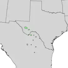 Grave's oak can be found in three areas of southwest Texas, including Big Bend National Park, and mountain ranges of neighboring Coahuila state.[4][1][5]