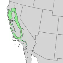 Combined ranges of Quercus wislizeni and Quercus parvula