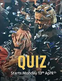 Quiz is a British drama television serial by James Graham, based on Graham's play of the same name[2] commissioned by William Village[3] and the book Bad Show: the Quiz, the Cough, the Millionaire Major by Bob Woffinden and James Plaskett.[4] It is directed by Stephen Frears[5][6][7][8] and consists of three episodes.[9] The series focuses on the disgraced Who Wants to Be a Millionaire? contestant Charles Ingram, a former army major in the Royal Engineers, and how he unexpectedly won the £1,000,000 jackpot on the quiz show in 2001, followed by a criminal trial in which he and his wife were convicted of cheating their way to success.[10]