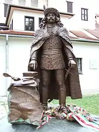 The Rákóczi's sculpture in Košice is a bronze statue of Francis II Rákóczi, situated in the Executioner's Bastion in the historical centre of Košice, Slovakia. It is placed in front of Rákóczi's memorial house, a replica of his house in the Turkish exile in Rodosto.