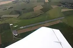 In 1986, l'Aéroclub du Boulonnais took over Saint-Inglevert following closure of their previous base at Ambleteuse. Since its closure, the runway had been used as a dump for old tyres and scrap vehicles,[47] and it took three years to restore the airfield, which reopened on 30 July 1989.[2] On the night of 5–6 April 2010, a fire in a hangar at Saint-Inglevert destroyed the hangar and eight aircraft.[48] The destroyed aircraft were replaced by a Robin DR300, a Robin DR400, a Piel Emeraude CP3005 and a Jodel D195. A Piper PA-28 was also acquired which needed restoration to make it airworthy. The replacement aircraft were housed in a 10-by-10-metre (33 ft × 33 ft) tent hangar erected on the airfield, or temporarily outstationed at Calais or Le Touquet. A new 30-by-20-metre (98 ft × 66 ft) hangar, replacing the one destroyed by the fire,[49] was officially opened on 30 March 2012, and can accommodate ten aircraft.[50] Following the fire, a NOTAM was issued temporarily restricting the use of the airfield until 15 November 2010 to aircraft based there. On 26 August 2010, Saint-Inglevert was given the ICAO identifier LFIS, allowing it to be classed as a public airfield instead of a private one. This had taken ten years to achieve.[49]