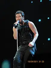 In October 2009, in support of his fifth album Rainism, Rain kicked off his third concert tour, The Legend of Rainism Tour with two shows at Olympic Gymnastics Arena in Seoul on October 9 and 10.[42] It continued with concerts in various parts of Asia and at The Colosseum at Caesars Palace in Las Vegas, Nevada, on December 24–25, 2009.[43][44] On April 6, 2010, Rain released a special mini-album titled Back to the Basic,[45] including the singles "Love Song" starring Han Ye-seul in the music video[46] as well as "Hip Song". Once again, Rain topped the Time 100 reader's poll.[47] In October, Rain represented Korea and performed at the 7th Asia Song Festival, organised by Korea Foundation for International Culture Exchange, at the Seoul Olympic Stadium.[48]
