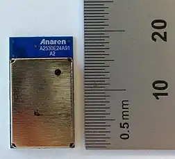 An RF module (short for radio-frequency module) is a (usually) small electronic device used to transmit and/or receive radio signals between two devices. In an embedded system it is often desirable to communicate with another device wirelessly. This wireless communication may be accomplished through optical communication or through radio-frequency (RF) communication. For many applications, the medium of choice is RF since it does not require line of sight. RF communications incorporate a transmitter and a receiver. They are of various types and ranges. Some can transmit up to 500 feet. RF modules are typically fabricated using RF CMOS technology.