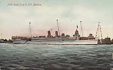 RMS Medina was an ocean liner built by Caird and Company, Greenock, Scotland, in 1911,[1] for the Peninsular and Oriental Steam Navigation Company. She was a Royal Mail Ship intended for use on the London to Australia route[1] and was the last of the ten ships in P&O's M-Class.[1] Between November 1911 and February 1912 Medina took King George V and Queen Mary to India for the Delhi Durbar. Medina was lost when she was torpedoed on 28 April 1917.