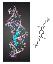 - ↑ Wong, Chun-Ho; Nguyen, Lien; Peh, Jessie; Luu, Long M; Sanchez, Jeannette S; Richardson, Stacie L; Tuccinardi, Tiziano; Tsoi, Ho; Chan, Wood Yee; Chan, H. Y. Edwin; Baranger, Anne M; Hergenrother, Paul J; Zimmerman, Steven C (2014). "Targeting Toxic RNAs that Cause Myotonic Dystrophy Type 1 (DM1) with a Bisamidinium Inhibitor". Journal of the American Chemical Society. 136 (17): 6355–61. doi:10.1021/ja5012146. PMC 4015652. PMID 24702247.