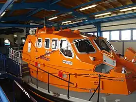 Lester ON 1287 is a Tamar class slipway launched lifeboat, designed to replace the Tyne-class lifeboat. The Tamar class lifeboat is the most advanced vessel in the RNLI fleet. The Lester ON 1287 is loaded with new technology, including fly-by-wire joystick steering, suspension seats to protect crew in severe weather, and an onboard computer system called Systems and Information Management System (SIMS). SIMS allows complex tasks such as engine and navigation management to be displayed on a single flat LCD screen, six of which are positioned around the vessel, to allow crew to operate all the systems without moving from their seats. In the stern section of Lester ON 1287 there is a built in recessed chamber which house a small inflatable daughter boat. Access to the inflatable daughter boat is by means of lowering the transom, and lifting a section of deck. This allows the tender to be launched and recovered on to a ramp provided by the lowered transom section. On the Lester ON 1287 the Y class boat has the official number Y-207. The lifeboat's hull was manufactured at Green Marine[2] in Lymington, Hampshire, and is constructed from Fibre reinforced plastic (FRP). The fitting out was completed at the yards of Devonport Management Limited[2] in Devonport, Plymouth, Devon. The lengthy process of fitting out involves all the main components being fitted into the vessel and secured to their mounting points. Once this has been done the component units are removed from the hull leaving the mounts in place and the interior is then painted. The lifeboat was built at a cost of £2.5 million and was launched on 26 April 2007.[2]