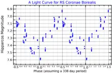 A light curve for RS Coronae Borealis, plotted from Hipparcos data[3]