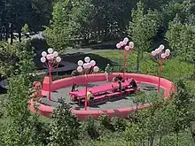 Among their works are the "M," a 45' public artwork in Downtown Miami;[3] "The Living Room" a 42' tall inside-out unfinished home;[3] "Besame Mucho," a "Super-billboard" constructed for the Coachella Music and Arts Festival;[4][5] and "The Home We Share" at Princeton University, a collection of three social sculptures known as "Flower Fields Forever," "Forget Me Not," and "Dreaming Room".[6] R&R Studios' artworks, among others, belong to the permanent public collections of the Museum of Modern Art in Buenos Aires, Princeton University Art Museum, Perez Art Museum Miami, the Archives d'Architecture Moderne, in Brussels and private collections around the world.
