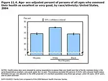 There are significant disparities in health outcomes between the five racial groups recognized by the U.S. Census. These health disparities are in part caused by different levels of income across the five groups recognized by the U.S. Census.[12] There are also notable differences in access to healthcare and the quality of healthcare received by those who identify with different racial categories.