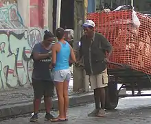 Social apartheid is tied to the exclusion of poor youth (particularly street youth) from Brazilian society.[13] Some political theorists assert the role of the police in keeping the inhabitants of Brazil's many favelas from encroaching on the lives of middle- and upper-class Brazilians is key to maintaining this state of apartheid.[14]