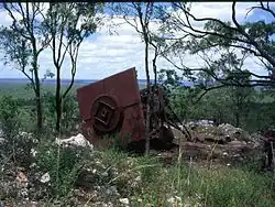 The remnant fabric of No.53 RDF Station at Mt. Surprise is dispersed over a wide area. The now collapsed radar control tower (part of the 'Doover') is located in the original position just beneath a rocky knoll at the northern end of Mount Lookout. From its location, excellent views are obtained west, north and east over the surrounding flat country. Extending southwards, other remnant infrastructure is located at various points on three small terraces at descending elevations and at the base of the hill where the encampment was located.[1]