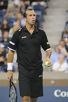 Radek Štěpánek (Czech pronunciation: [ˈradɛk ˈʃcɛpaːnɛk]; born 27 November 1978) is a Czech former professional tennis player. His career-high singles ranking was world No. 8 and best doubles ranking was world No. 4. Štěpánek's biggest achievements are reaching two Masters 1000 event finals and the quarterfinals of Wimbledon in 2006, as well as winning the deciding match for Czech Republic's Davis Cup winning team in 2012 and again in 2013. In doubles, he won his first Grand Slam title at the 2012 Australian Open, along with Indian partner Leander Paes, defeating the Bryan Brothers in the final. Paes and Štěpánek also won the men's doubles title at the 2013 US Open, defeating Bruno Soares and Alexander Peya in the final. In November 2017, he became a coach of Novak Djokovic and in May 2019, he joined Andre Agassi[1] as part of Grigor Dimitrov's coaching staff.