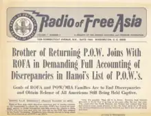 Radio of Free Asia, sometimes called Radio Free Asia, was an anti-Communist radio station created by the Korean Cultural and Freedom Foundation which broadcast from Seoul into North Korea, China, and Vietnam.[1][2][3] In a congressional hearing, General Coulter, then President of the Korean Cultural and Freedom Foundation, declared Radio of Free Asia the principal project of the foundation.[4] It operated from 1966 to early 1970s.