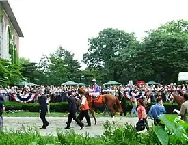 ![]() Rags to Riches in the paddock area at Belmont Park during the day of the Belmont Stakes (June 9, 2007) | |