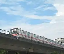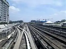 Guideway of the Punggol LRT, with the third rail located to the right of the guideway.