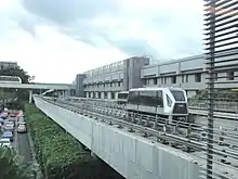 Changi Airport, the main international airport of Singapore, is served by an automated rubber-tyred Skytrain system which first opened in 1990 to connect both the landside and airside of Terminals 1 and 2 when the latter terminal opened the same year. From 2004 to 2007, the original Adtranz C-100 system was replaced with the Mitsubishi Crystal Mover when the system was upgraded and expanded to Terminal 3. In 2019, six more vehicles were phased in and three-car services between Terminals 2 and 3 were introduced to expand the capacity of the system.[24]