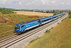 ![]() ÖBB Railjet train near Pfarrwerfen on Salzburg-Tyrol Railway | |