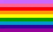 | Design | Striped flag, typically six colors (from top to bottom): red, orange, yellow, green, blue, and violet. |
