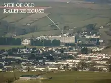 The historic manor of Raleigh, near Barnstaple and in the parish of Pilton, North Devon, England, was the first recorded home in the 14th century of the influential Chichester family of Devon. It was recorded in the Doomsday Book of 1086 together with three other manors that lay within the later-created parish of Pilton. The manor lies above the River Yeo on the southern slope of the hill on top of which stand the ruins of the Anglo-Saxon hillfort called Roborough Castle.[2] Part of the historic manor of Raleigh is now the site of the North Devon District Hospital.