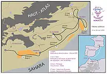Dominique Serra, head of the operating agency Maïenga, organized the first women’s rally in 1990. Initially planned as an image campaign and to dispel prejudices, today the Rallye Aïcha des Gazelles is one of the most important motor sport events in Morocco. The 2009 rally took place under the patronage of his Majesty, the Moroccan King Mohammed VI on the occasion of his tenth year of reign. For this reason the coat of arms of the Moroccan Royal Guard was exceptionally attributed to the event this year. King Mohammed VI had – much to the opposition of the fundamentalists and Islamist conservatives – reformed and liberalized family law in favour of women by creating a new family code, the Mudawana, during his 10 years of rulership.
