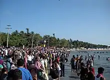 There are sixty-four Tīrthas (holy water bodies) in and around the island of Rameswaram, Tamil Nadu, India.[11] According to Skānda Purāṇa, twenty-four of them are important.[12] Bathing in these Tīrthas is a major aspect of the pilgrimage to Rameswaram and is considered equivalent to penance.[13] Twenty-two of the Tīrthas are within the Rāmanāthasvāmī Temple.[14] The number 22 indicates the 22 arrows in Rama's quiver.[8] The first and major one is called Agni Theertham, the sea (Bay of Bengal).[2]