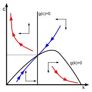 - ↑ The Jacobian matrix of the Ramsey–Cass–Koopmans system is