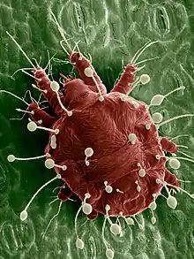 | Adult Raoiella indica, an SEM image with false-color added | |