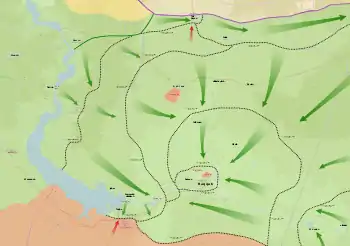 On 19 September 2012, Free Syrian Army rebels led by the Farouq Brigades captured the border town of Tell Abyad and its border crossing with the town of Akçakale in Turkey.[10] The next day, the Syrian Air Force bombed a petrol station in Tell Abyad, killing 30 civilians and wounding 70. A rebel fighter was also mortally wounded.[11] In October, Syrian government forces launched a counteroffensive in Tell Abyad which resulted in a border clash between Syria and Turkey.[12]